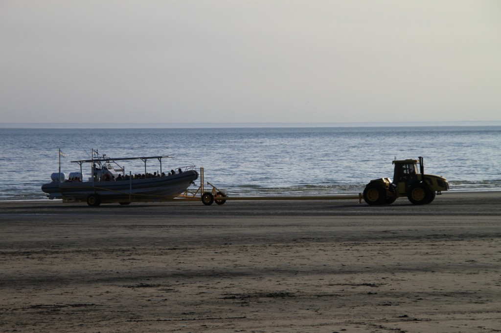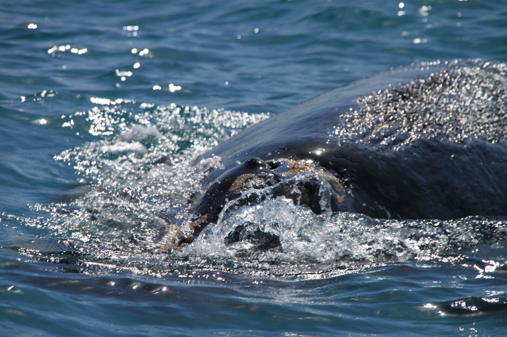 On quitte la plage grâce à un tracteur puisqu’il n’y a pas de ponton et assez rapidement, à une faible distance de la plage, on rencontre la première baleine et son baleineau. Le « capitaine » coupe le moteur du bateau et ainsi débute la magie… Nous gagnons ensuite le large et une autre anse où l’on ne sait plus où donner du regard, des dizaines de baleines nous entourent plus ou moins proches…