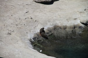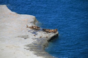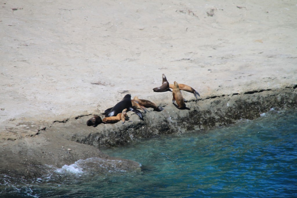 Nous arrivons enfin à l’endroit où se trouve une colonie de lions de mer. C’est une grosse otarie au large museau dont le mâle porte, au niveau du cou et des épaules, une fourrure plus longue et dense évoquant une crinière (d’où son nom). Généralement, le mâle règne sur un harem d’une dizaine de femelles.