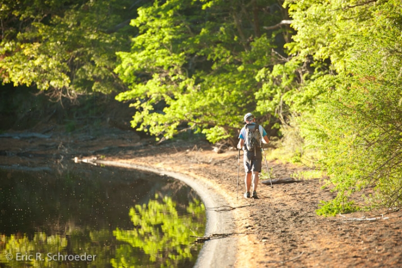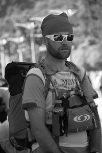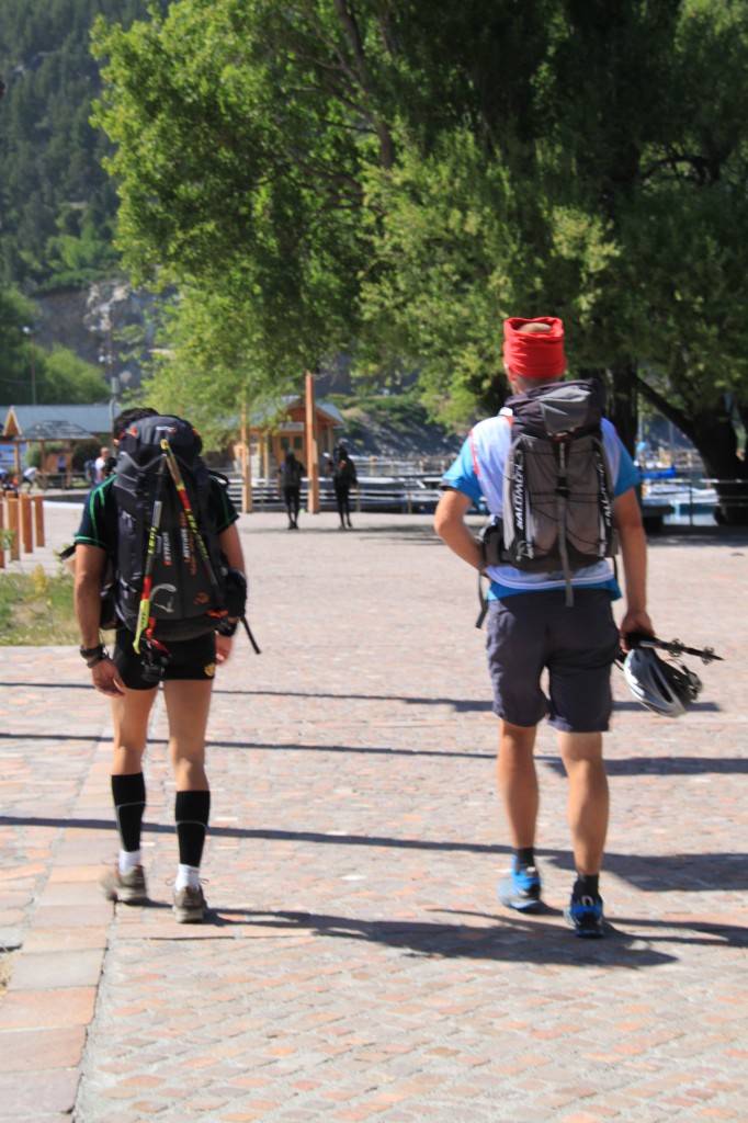 Hervé a rempli son sac à dos du matériel obligatoire (sac de couchage et sur-sac pour remplacer la tente, trousse à pharmacie, carte et indications de parcours traduites pendant la nuit et avec amour par sa chérie…) et de sandwichs et gels énergétiques et part donc avec un peu moins de 10 kg sur le dos.