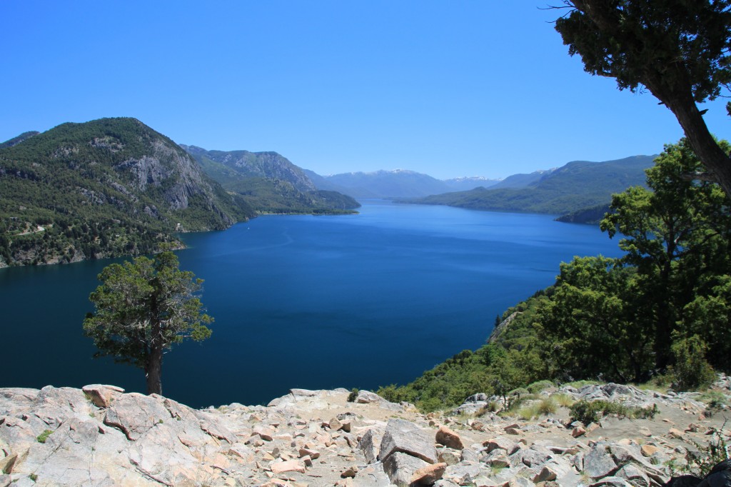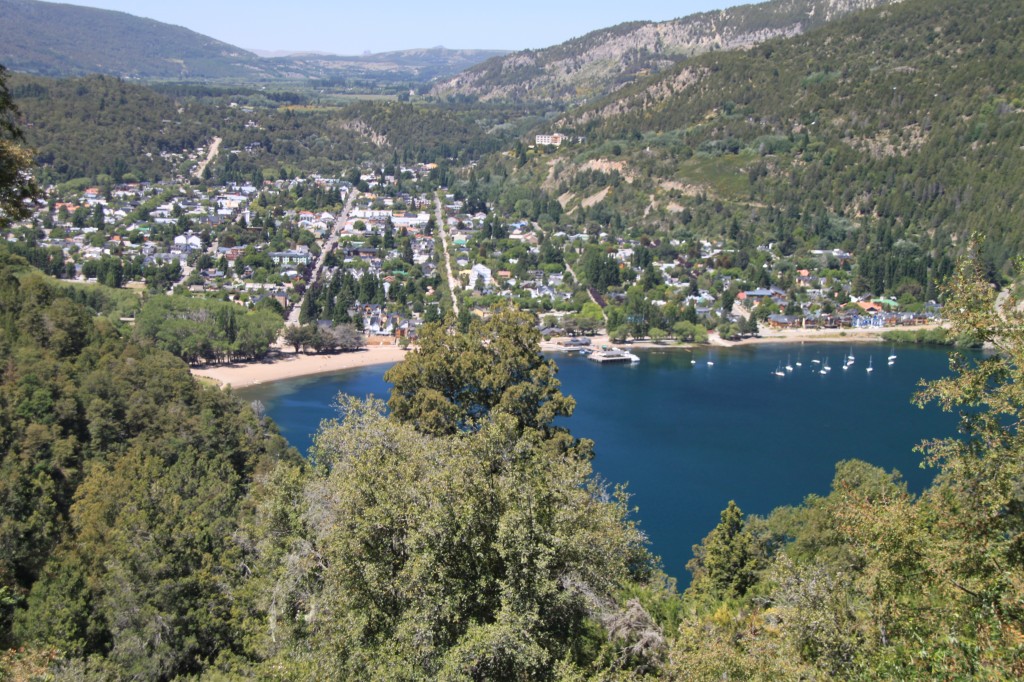 Après avoir encouragé mon fada d’amoureux au départ, je rentre manger un morceau à l’hôtel avant de partir pour découvrir enfin les environs de San Martin. Je monte donc en premier lieu au mirador Bandurrias. Après une quarantaine de minutes de montée, j’arrive dans une communauté Mapuche et 2 gamins rigolards d’une dizaine d’années viennent me réclamer mon tribut (2 pesos) pour pouvoir entrer dans la zone réservée. Ils m’indiquent ensuite la route du Mirador que je rejoins très rapidement. La vue y est fabuleuse sur San Martin d’un côté, le lac et les montagnes de l’autre.
