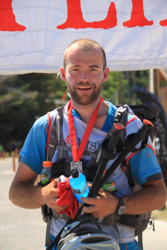 Il court sur les derniers mètres et passe la ligne d’arrivée en souriant mais il s’écroule ensuite rapidement dans l’herbe (comme les autres coureurs) et s’endort rapidement… Il peine à quitter ses chaussures et prendra la direction de l’hôtel en chaussettes, jusqu’à ce qu’une âme charitable le prenne dans son 4×4 pour le déposer devant l’hôtel.