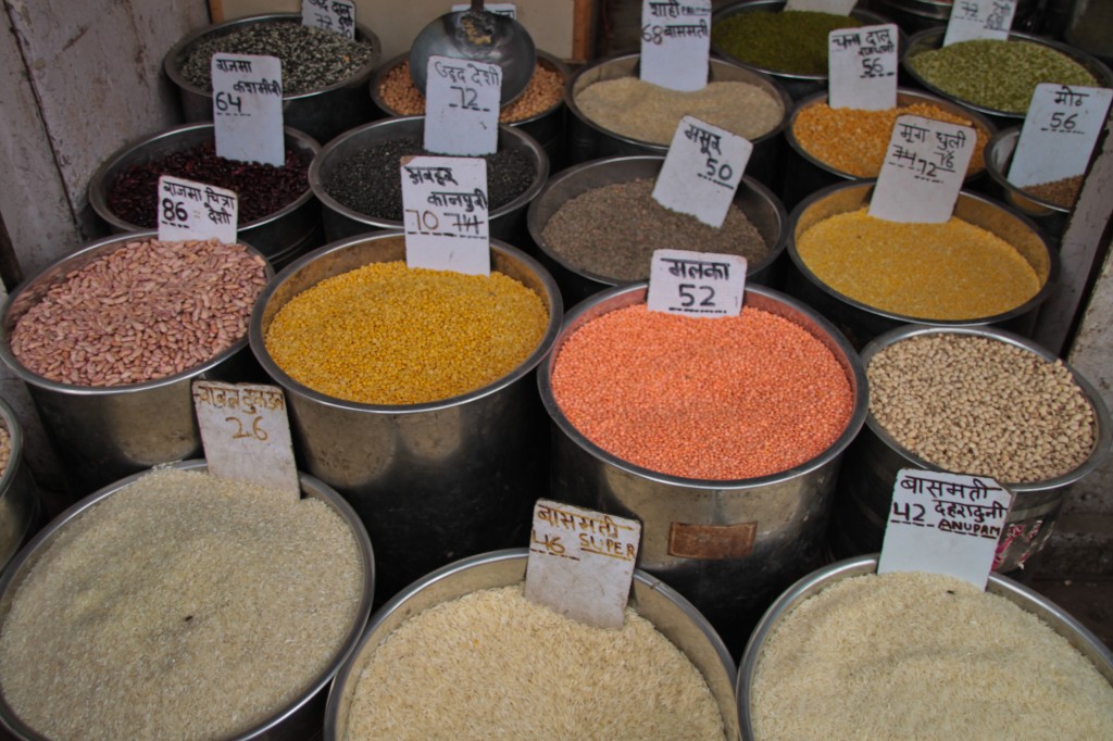 Le marché aux épices nous en met plein les yeux mais surtout plein le nez, au sens propre comme au figuré. On éternue à plusieurs reprises et on est même pris de quintes de toux devant ces étals multicolores. L’ocre du masala, l’orangé du curcuma, l’écarlate du piment rouge se mêlent aux teintes plus douces de la cannelle, de la cardamome, du thé mais aussi des fruits secs. Les odeurs puissantes des épices peinent quand même par endroit à couvrir celle de l’urine.