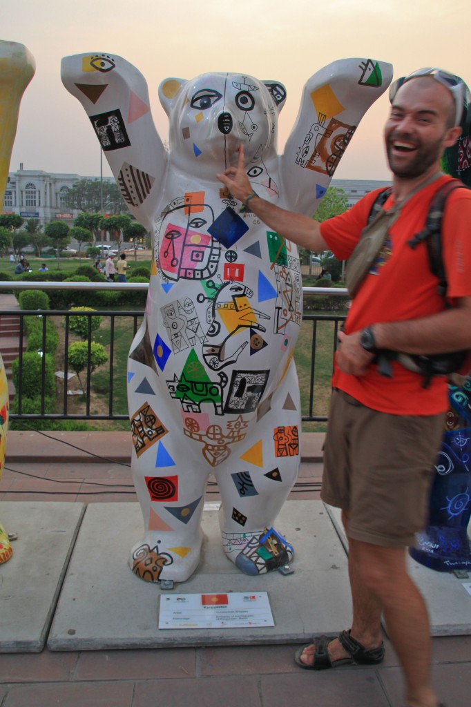 Après cette overdose de sensations, nous retournons en début d’après-midi vers Main Bazaar où l’agitation est toujours conséquente mais la foule moins compacte. Après un bon plat de momos, raviolis (à la vapeur ou frits) fourrés le plus souvent aux légumes, et une petite session internet nous reprenons notre exploration de la ville en nous dirigeant vers Connaught Place, plus au sud. On y trouve une exposition artistique de statues d’ours représentant toutes (ou presque) les nationalités et une ambiance décontractée et plus moderne que dans l’ancienne Delhi.