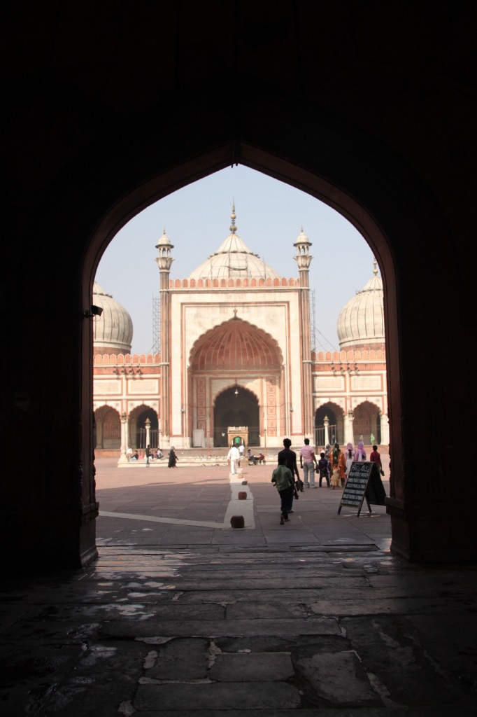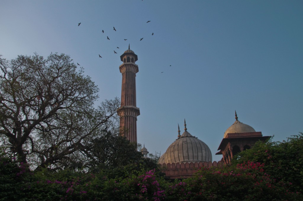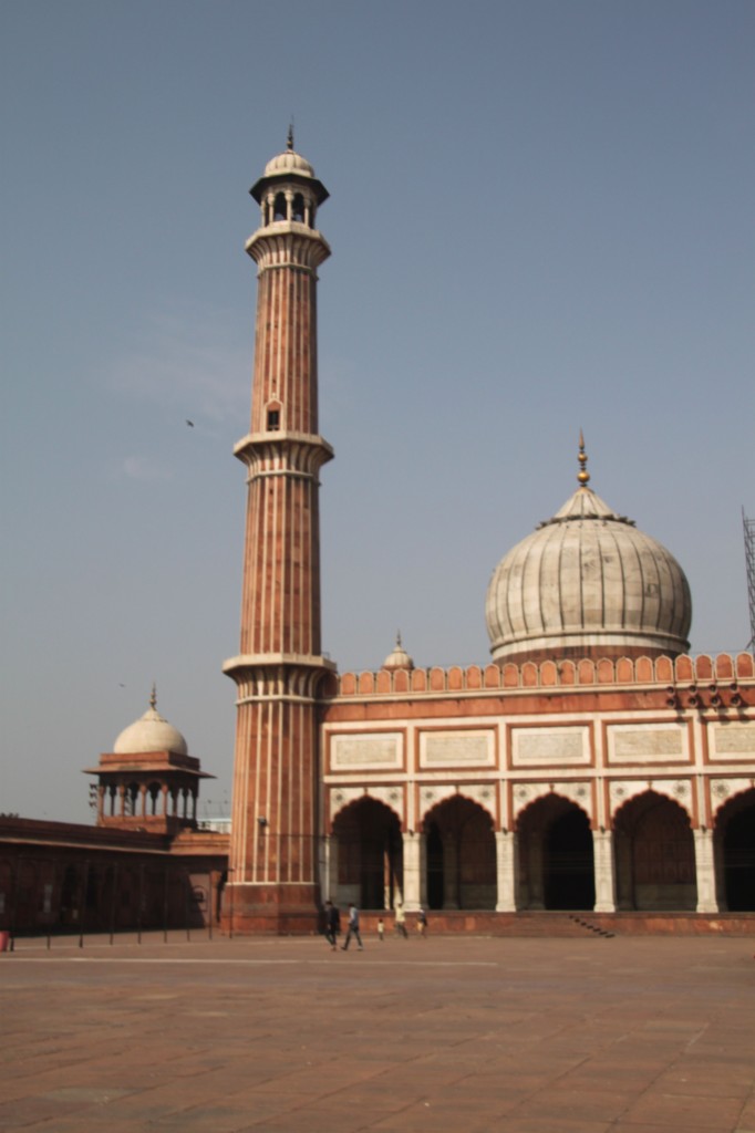 La visite du fort, qui date de l’apogée de la dynastie moghole, nous plait beaucoup comme celle de l’impressionnante mosquée Jama Masjid (œuvre de Shah Jahan, le même qui a fait construire le Taj Mahal… rien que ça). Du sommet du minaret, 40 mètres de haut quand même et où les femmes ne peuvent monter qu’accompagnées d’un homme, on a une superbe vue sur la ville.