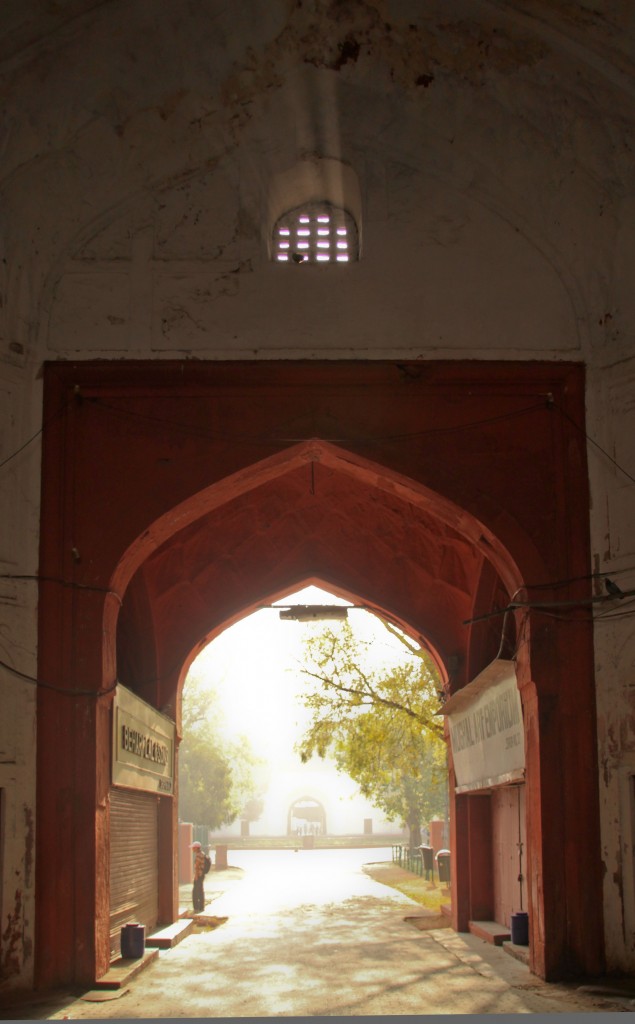 Mercredi 4 avril. Ce matin nous faisons le même trajet qu’hier pour nous rendre de bonne heure au fort rouge. Les urinoirs au bout du pont qui surplombe les voies ferrées sont toujours aussi sales et odorants. Il est 6h quand nous remontons les rues d’Old Delhi certes moins encombrées à cette heure mais très sales car les petits balayeurs ne sont pas encore entrés en action. Surtout, nous surprenons dans ce qu’il leur reste d’intimité les gens qui dorment dans la rue, en train de se réveiller ou de faire un brin de toilette près des pompes à eau manuelle. Je me sens encore plus gênée qu’hier, en tant que « touriste » et en tant que femme.