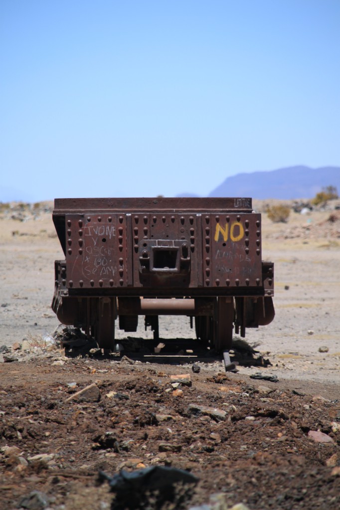 Lundi 17 octobre, nous avons quitté la charmante ville de Potosi pour celle, plus au Sud, d’Uyuni. C’est une ville très particulière, pas très grande mais avec de larges rues, un peu triste, très plate, à 3656m d’altitude et balayée par un vent froid quasi permanent. C’est aussi et surtout le point de départ de la plupart des excursions en direction du Salar du même nom et de la région du Sud-Lipez.