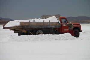 Le sel prend des formes hexagonales qui se répètent à l’infini et sur 40 mètres d’épaisseur alternent couches de sel et de glaise. Les réserves de lithium du Salar attirent aussi beaucoup les convoitises…