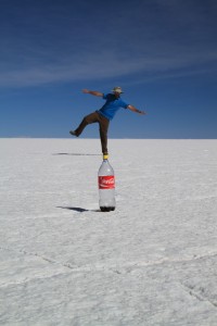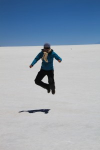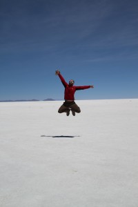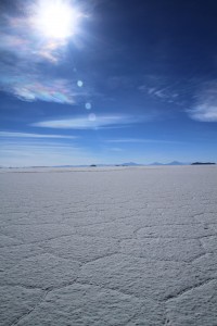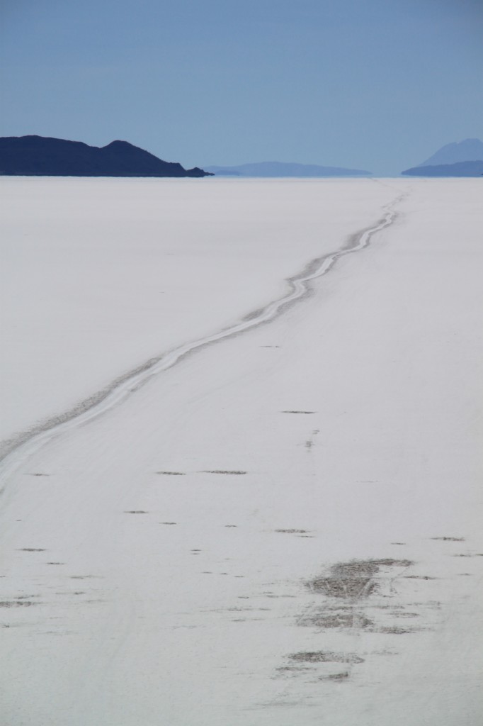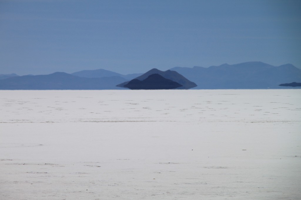 L’arrêt suivant a lieu dans le Salar proprement dit. Là, c’est un décor assez irréel. A 3650m d’altitude, c’est un immense désert de sel aveuglant de 12500km², le plus grand du monde (l’équivalent de 2 départements français).