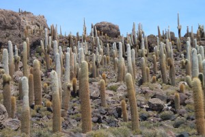 Cela n’enlève pourtant rien à la splendeur de l’endroit ! Nous nous arrêtons également sur une des îles perdues au milieu du salar, celle d’Inca Huasi qui se transforme en fait temporairement en île lorsque l’eau recouvre l’étendue de sel quelques jours dans l’année, empêchant alors son accès à pied.