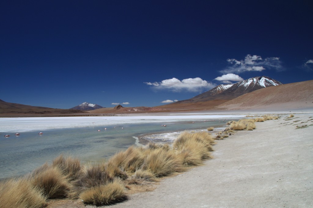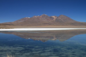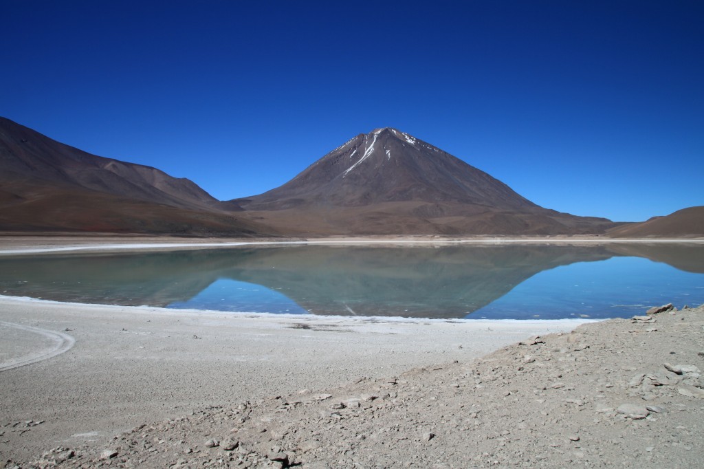 Après un bref passage dans le désert de Dali, hommage rendu au peintre en raison de la forme et des couleurs chaudes des pierres sculptées par le vent, nous atteignons la Laguna Verde, qui n’est pas exactement verte à cette heure (puisque sa couleur dépend du vent et de la position du soleil) mais n’en perd pas pour autant de sa somptuosité.