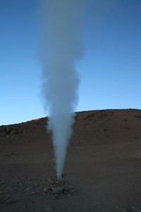 Il n’est pas encore 6h et malgré les vapeurs sulfureuses (pouvant approcher les 200°C) émanant de mares de boues bouillonnantes et les fumeroles accompagnées d’une douce odeur d’œuf pourri, il fait très froid et j’ai personnellement du mal à réchauffer mes orteils engourdis. Ces manifestations révèlent bien l’impressionnante activité géothermique de ce site.