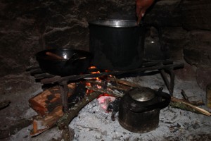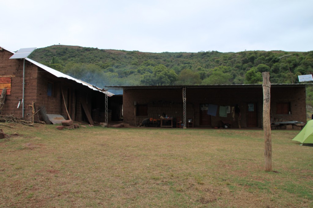 Une fois le col passé, il nous faudra encore marcher pendant plus de 2h sans être sûr de notre itinéraire, avant d’apercevoir enfin le cimetière du village. On a les pieds en compote et de grosses ampoules à cause de la descente et des sacs lourds mais on est obligé d’avancer puisqu’on doit trouver de l’eau. Quand enfin on aperçoit le village de Molulo en contrebas, c’est un gros soulagement. Par contre en arrivant dans le minuscule village, il n’y a absolument personne et tout est fermé. Nous nous installons derrière l’école, sur un bout de pré et Hervé déniche un semblant de source qui goutte à goutte, une eau sale que l’on ne pourra boire qu’en utilisant la gourde filtrante ou en la faisant bouillir.