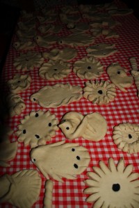 Térésa me montre comment elle fait ses empanadas et je lui propose mon aide pour la réalisation des petites figurines en pain. Hervé de son côté aide Isaac à couper le bois et préparer le four à bois pour la cuisson.