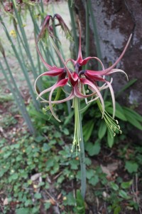 Lundi il nous faut pourtant repartir. Nous faisons nos adieux à nos hôtes et reprenons le chemin. Nous nous enfonçons dans la forêt et descendons pendant plus de 3 heures jusqu’au torrent, en chemin nous croisons de nombreux oiseaux dont des perroquets verts et  de hautes cascades et nous suivons sur le chemin les traces d’un félin (puma ?) mais sans en  voir l’ombre.