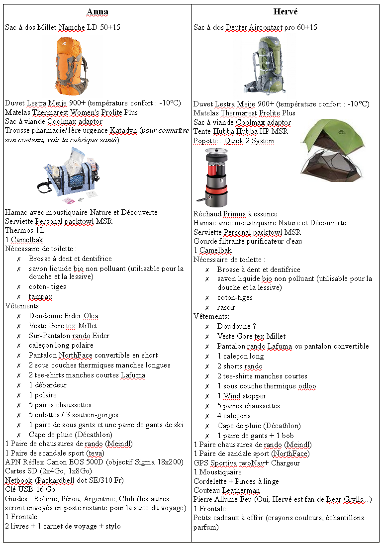 L’équipement, c’est le point qui a le plus souvent été source de chamailleries entre nous… Il est en effet difficile de mettre toute sa vie dans un sac à dos qui n’est pas celui de  Mary Poppins et de ne pas dépasser le poids limite que l’on peut supporter. On doit garder à l’esprit qu’on aura nos sacs sur le dos la plupart du temps.